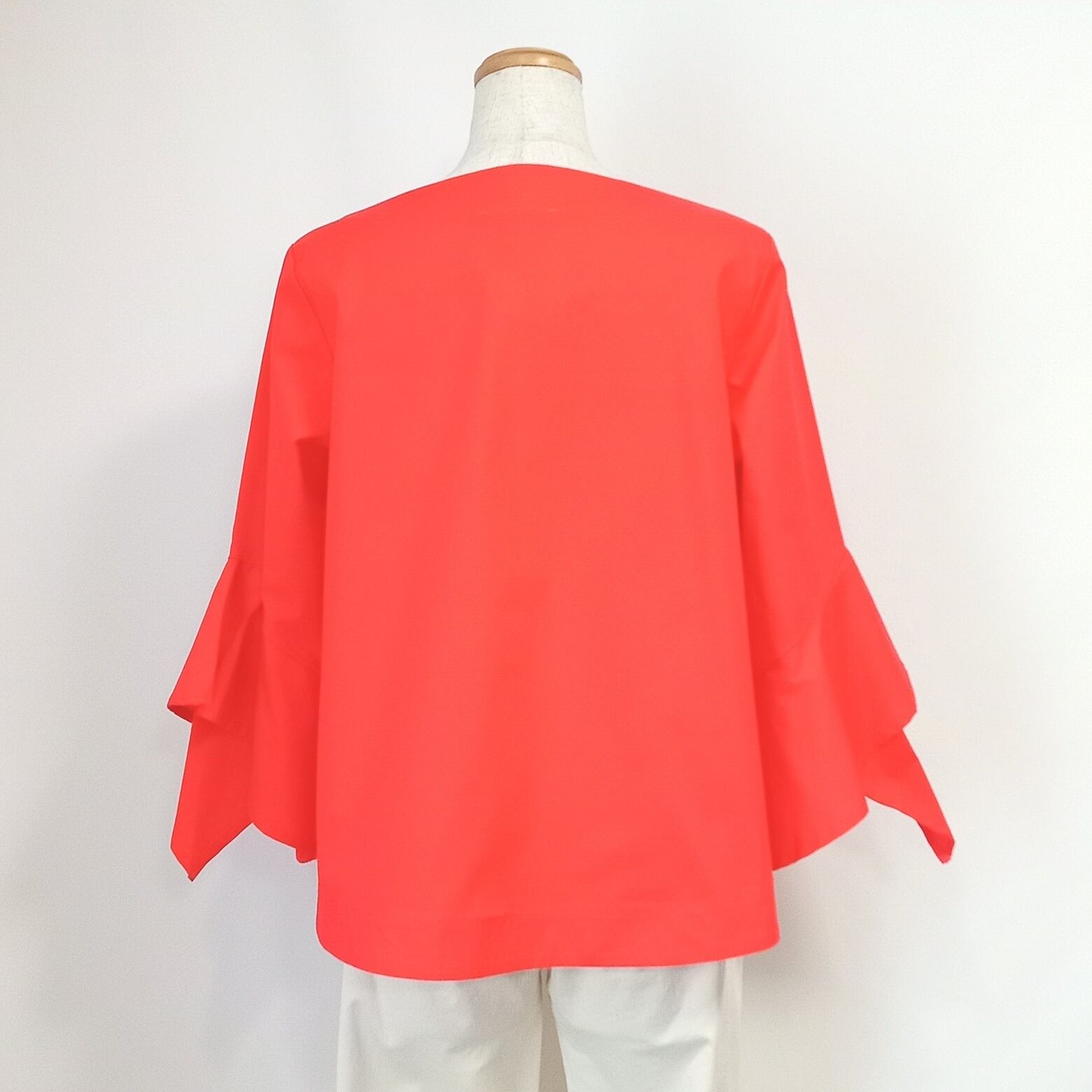 コットンストレッチのブラウスは、ディティールはシンプルですが袖口がチューリップの花びらのような可愛らしいデザインになっております。
