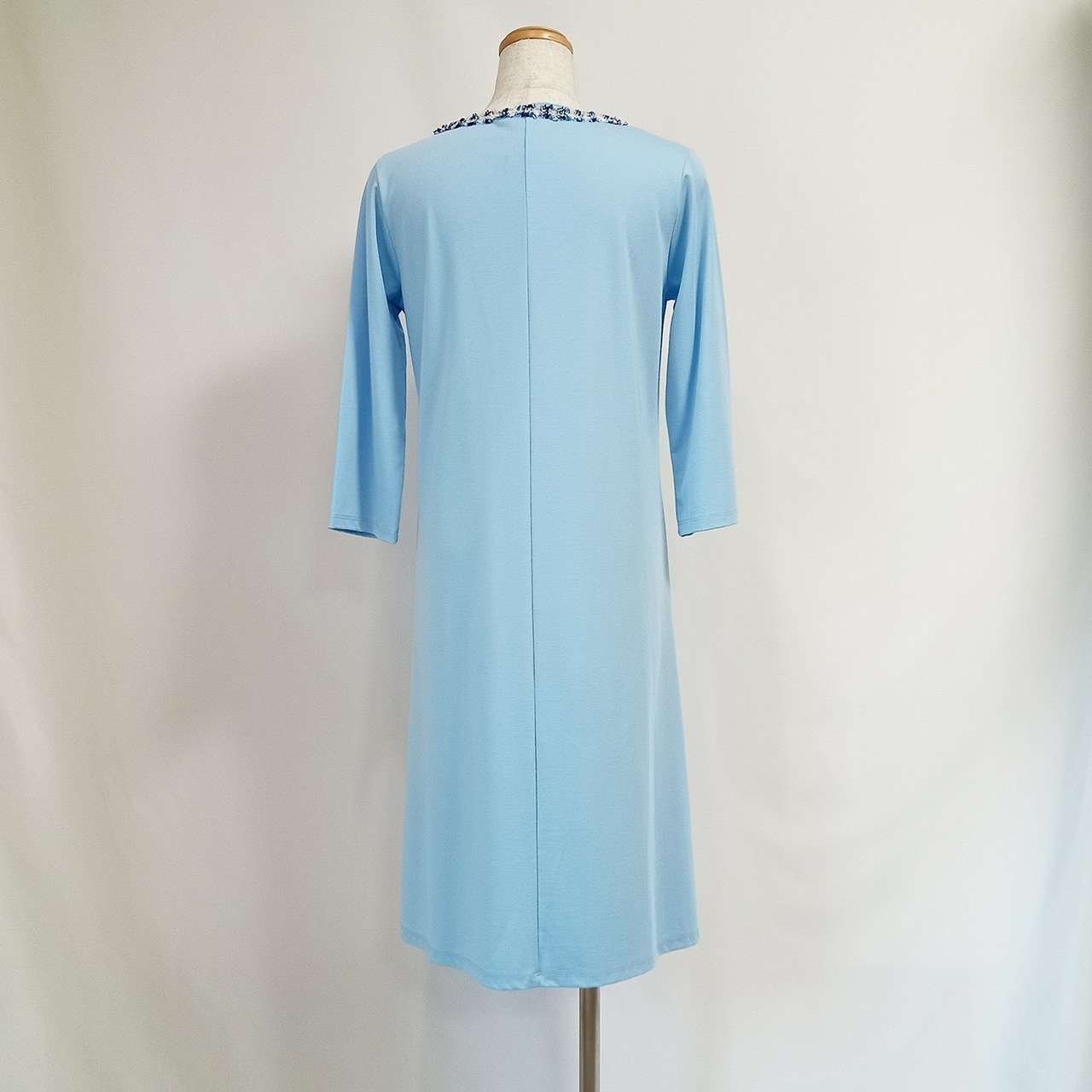 L'acqua のジャージ七分袖ワンピースは、夏の暑い日でも涼しく快適に過ごせる一枚です。冷房対策として肘を隠したいとの要望が多く、加えてもらったデザインのワンピースはナチュラルな風合いとシンプルなデザインで、どんなシーンでも活躍してくれます。軽やかな着心地で、さりげないおしゃれを楽しめるのが魅力です。