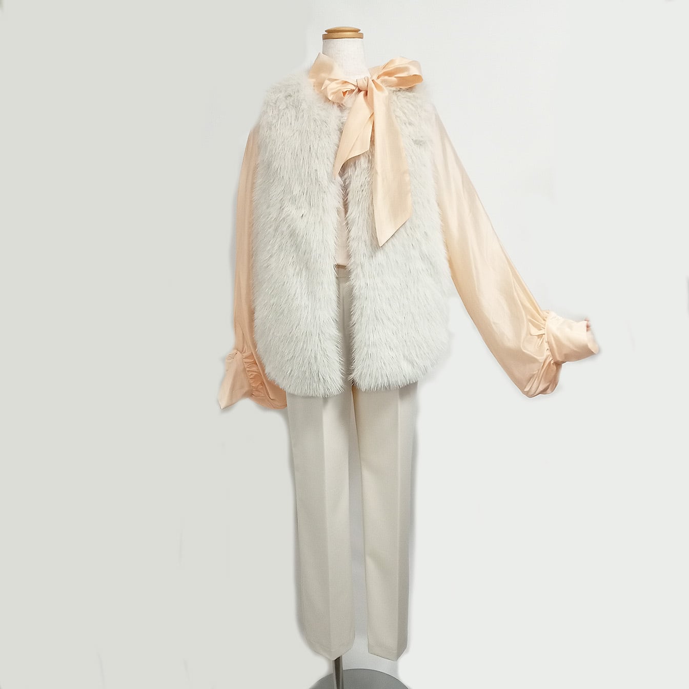 このエコファー・ジレは、重ね着にぴったりで、冬の寒さからあなたを守ります。さらっと羽織るだけで、ぐっとおしゃれ度がアップするアイテムです。カジュアルなスタイルからドレッシーなシーンまで、幅広くご利用いただけます。