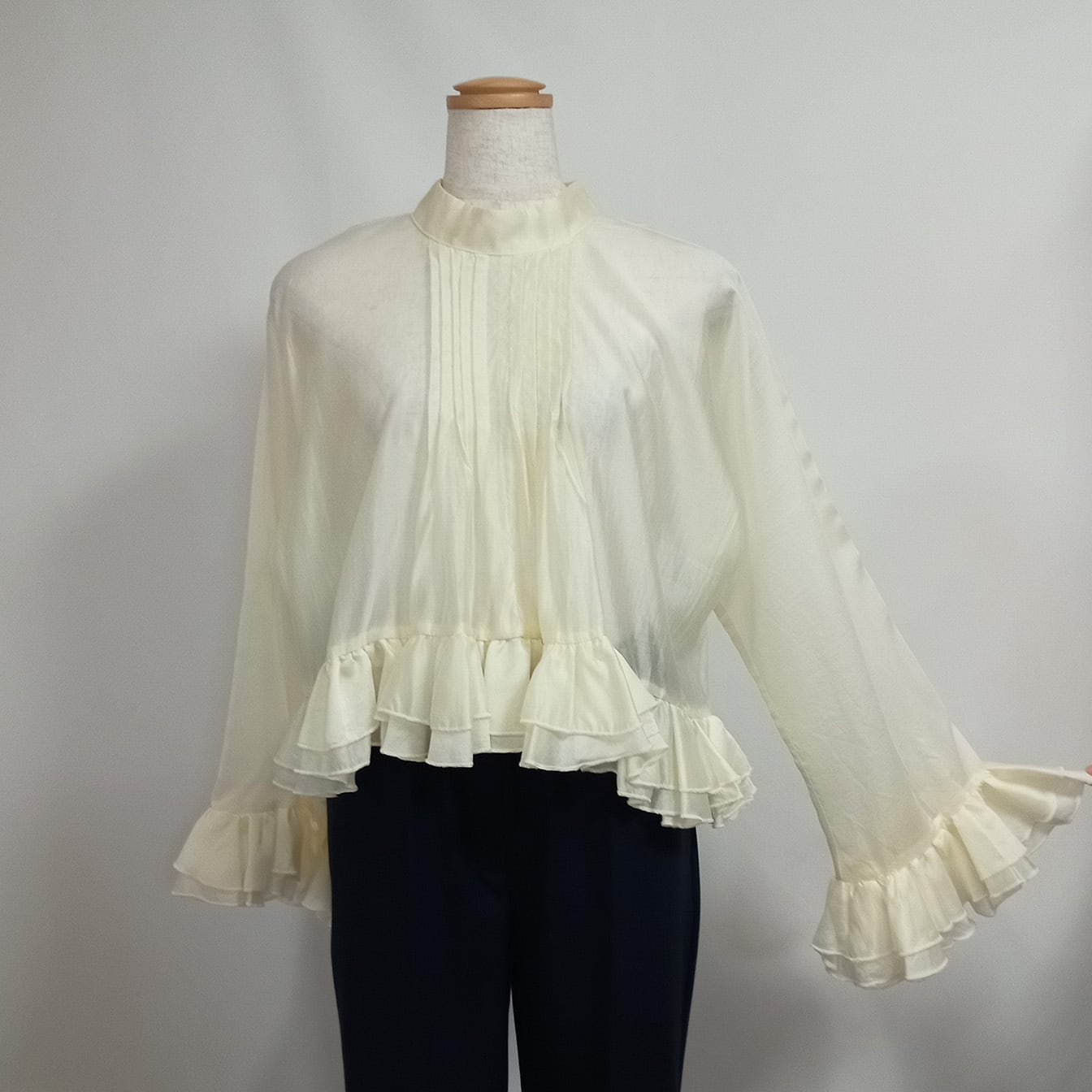 このシアー素材ブラウスは前身頃が後見頃より短めで、レイヤードスタイルにも最適なシーズンを通じて楽しむことができます。シンプルなインナーと組み合わせるだけで、エレガントなスタイルを完成させることができます。