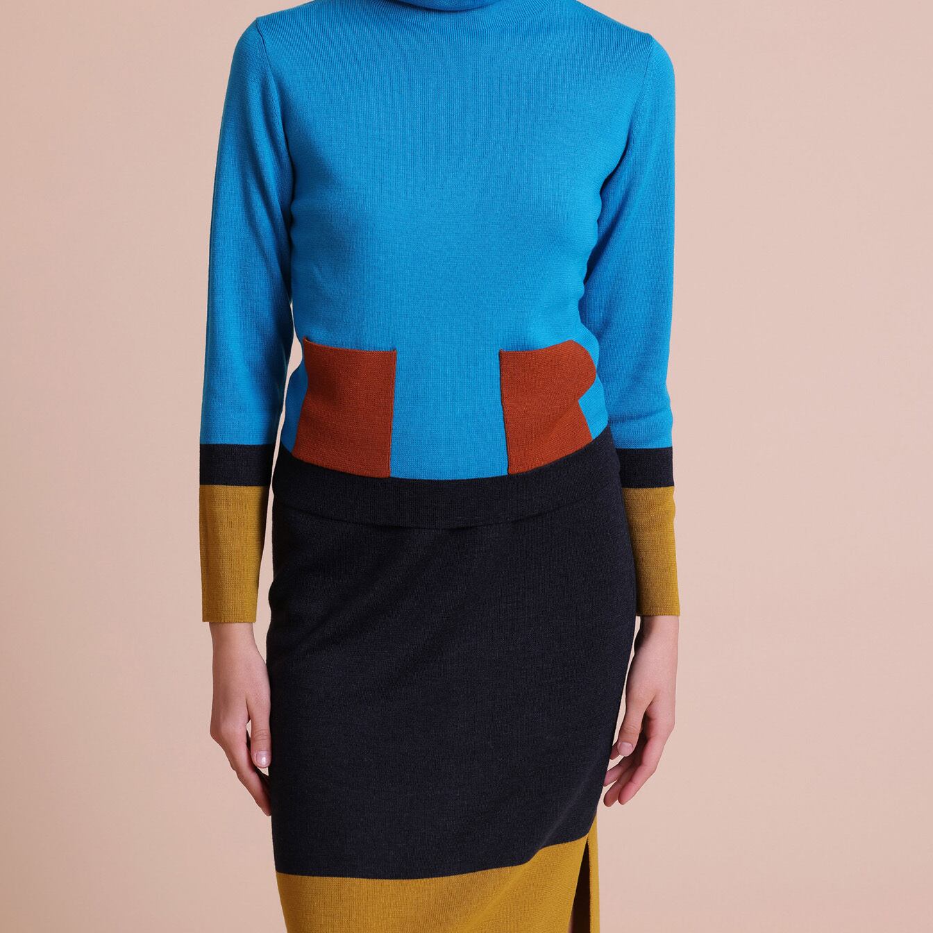 イタリアのスティリスタがデザインした大人の女性のためのニットウェア。平編みのタイトスカートは編地がしっかりしているので、体の線が表に響かず安心してご着用頂けます。今期のトレンドである配色のニットやカーディガンとコーディネートすると女性らしくエレガントなスタイルになります。